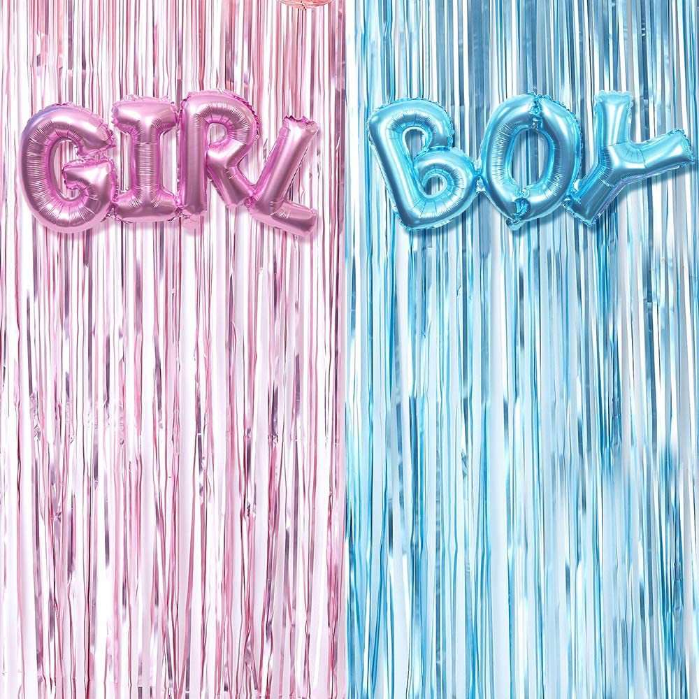 - 2 metallic fringe curtains (Pink and Blue)